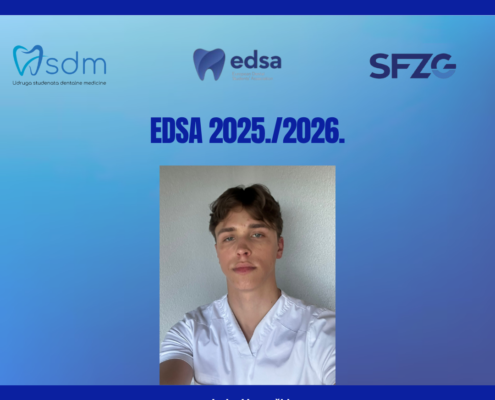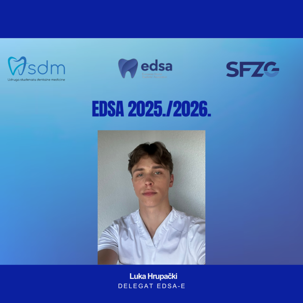 U svibnju 2025.godine, održani su redoviti izbori za izvršni odbor USDM-a te za nacionalnog delegata Europske udruge studenata dentalne medicine (EDSA). Kako se opseg rada Udruge kroz godine povećavao, bilo je nužno proširiti izvršni izbor za dva člana. Vođeni time uveli smo poziciju koordinatora za odnose s javnošću, za kojeg je izabran Lukas Wintsching, student 3.godine dentalne medicine, dok je za poziciju koordinatorice za projekte i događanja odabrana studentica 3.godine, Mia Kovač. Pozicije predsjednika, dopredsjednika i tajnika, ostale su iste kao i godinu prije. Tako je za tajnika izabran Mladen Kujundžić, student 4.godine, za dopredsjednicu Tea Kopić, studentica 6.godine, a Iva Biloš, studentica 5.godine, izabrana je za predsjednicu Udruge. Trebalo bi istaknuti, kako 60% izvršnog odbora čine studenti engleskog studija, što potvrđuje našu primarnu zadaću, uključivanje studenata engleskog smjera, u rad Udruge. Za nacionalnog delegata Lijepe naše izabran je student 4.godine, Luka Hrupački.
