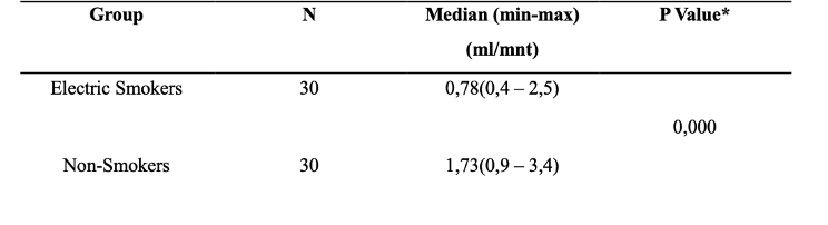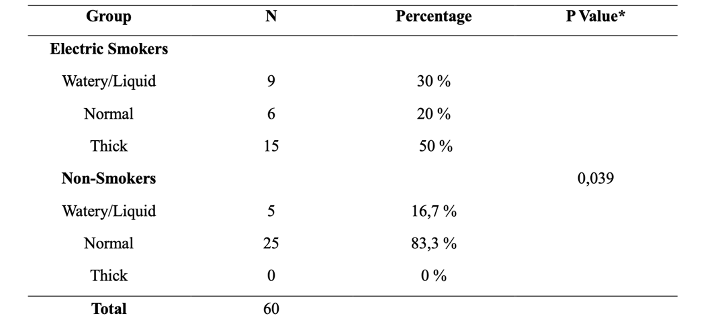 Tablica 4: Protok sline u pušaća električnih cigareta i nepušača, Difaputra i sur (3)
